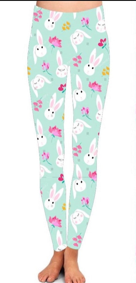 Some bunny is eggcited for Easter! 92/8 brushed poly-spandex blend. Super cute/comfy leggings for all sizes!