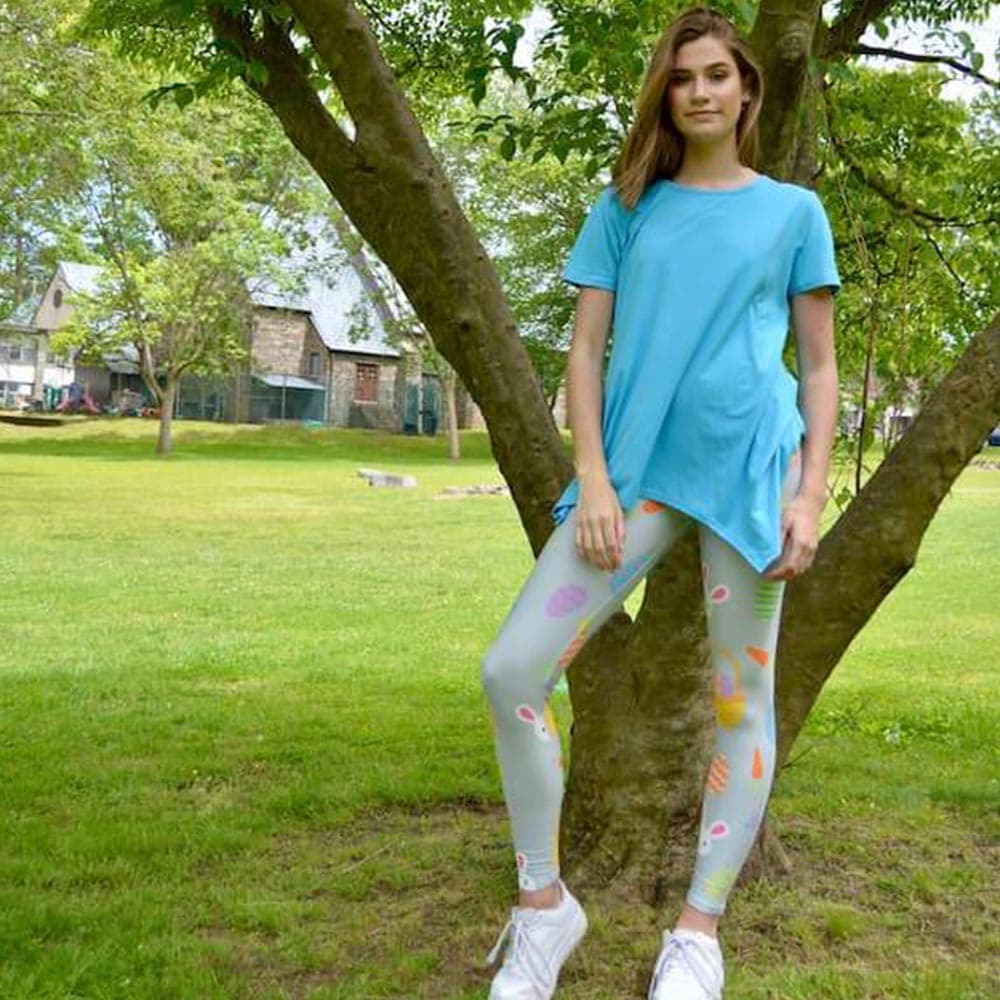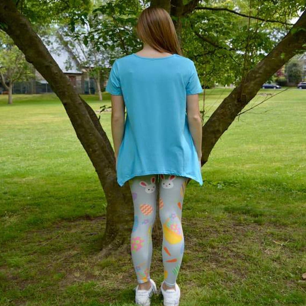 Some bunny is eggcited for Easter! 92/8 brushed poly-spandex blend. Super cute/comfy leggings for all sizes!