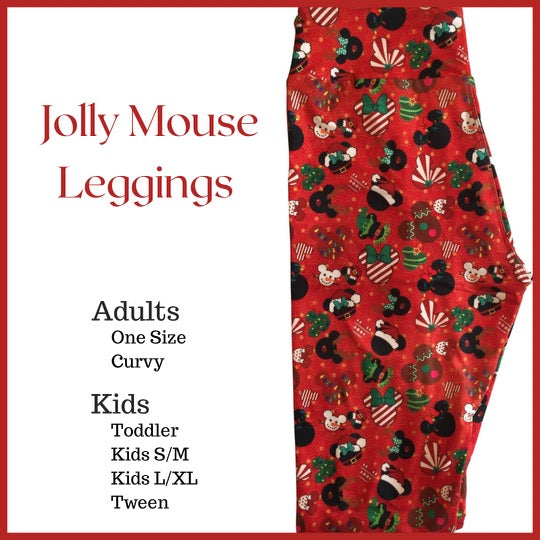 Our super cute red background Jolly Mouse leggings are perfect for the holiday season!