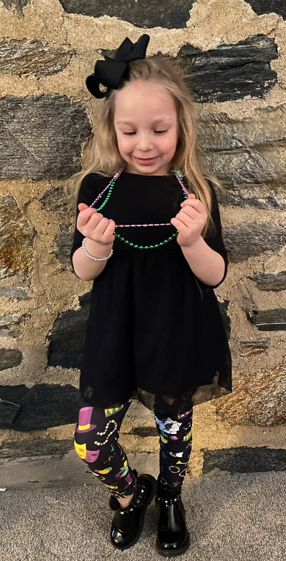 Celebrate Mardi Gras in style! These super cute super soft pair of leggings comes in all sizes! Cute as a mommy and me set! Adult $15One size fits 0-12Curvy fits 12-22Kids $12Toddler (12mo-2t)Kids S/M (2-6)Kids L/XL (8-12)Tween (14/16-00/0)